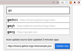 "Go" เป็นส่วนเสริมของ Chrome ที่พัฒนาโดย Manu Cornet ที่มีจำหน่ายฟรี มันอยู่ในหมวดหมู่ของเบราว์เซอร์ โดยเฉพาะอยู่ในส่วนของ Add-ons & Tools ส่วนเครื่องมือนี้ทำหน้าที่เป็นตัวแทนสำหรับ "go links" ในบริษัททั่วไป ที่คล้ายกับการใช้งานที่ Google ซึ่งฟังก์ชันหลักของ "Go" คือการเปิดเผยตารางเส้นทางในรูปแบบของไฟล์ JSON ซึ่งมีการทำแผนที่ aliases ไปยัง URL ที่เฉพาะเจาะจง คุณลักษณะนี้ช่วยให้การนำทางในเบราว์เซอร์เป็นไปอย่างรวดเร็วและมีประสิทธิภาพ โดยเสริมสร้างผลิตภาพและการเข้าถึงของผู้ใช้"